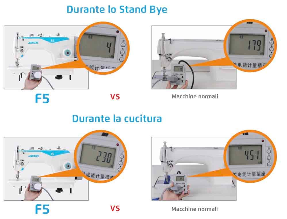 Il consumo è quasi nullo grazie alla modalità standby. Durante la cucitura il consumo è nettamente inferiore rispetto le altre macchine.