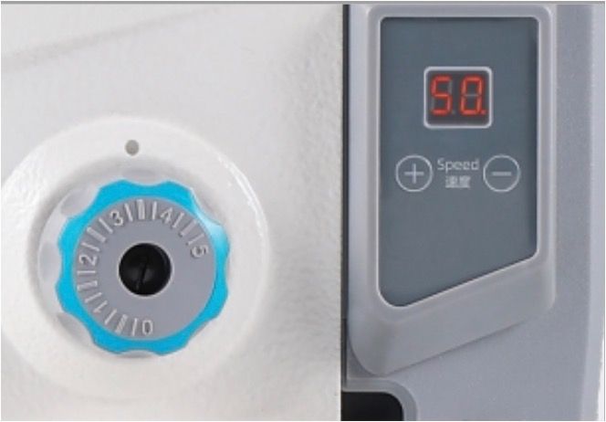 Con i tasti + e – puoi regolare la velocità digitalmente e mentre lavori ti viene mostrata in tempo reale.